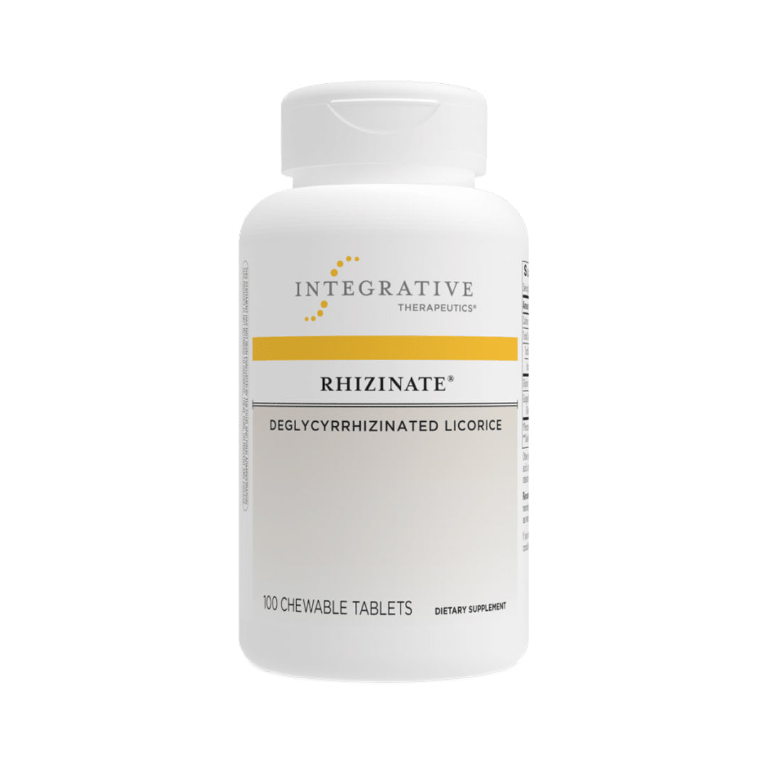 Rhizinate is deglycyrrhizinated licorice (DGL) in a chewable formula for soothing digestive relief.*
