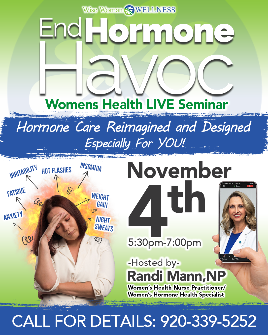 ● Price: $29 + tax ($25 is taken off the price of hormone testing if purchased at time of seminar).