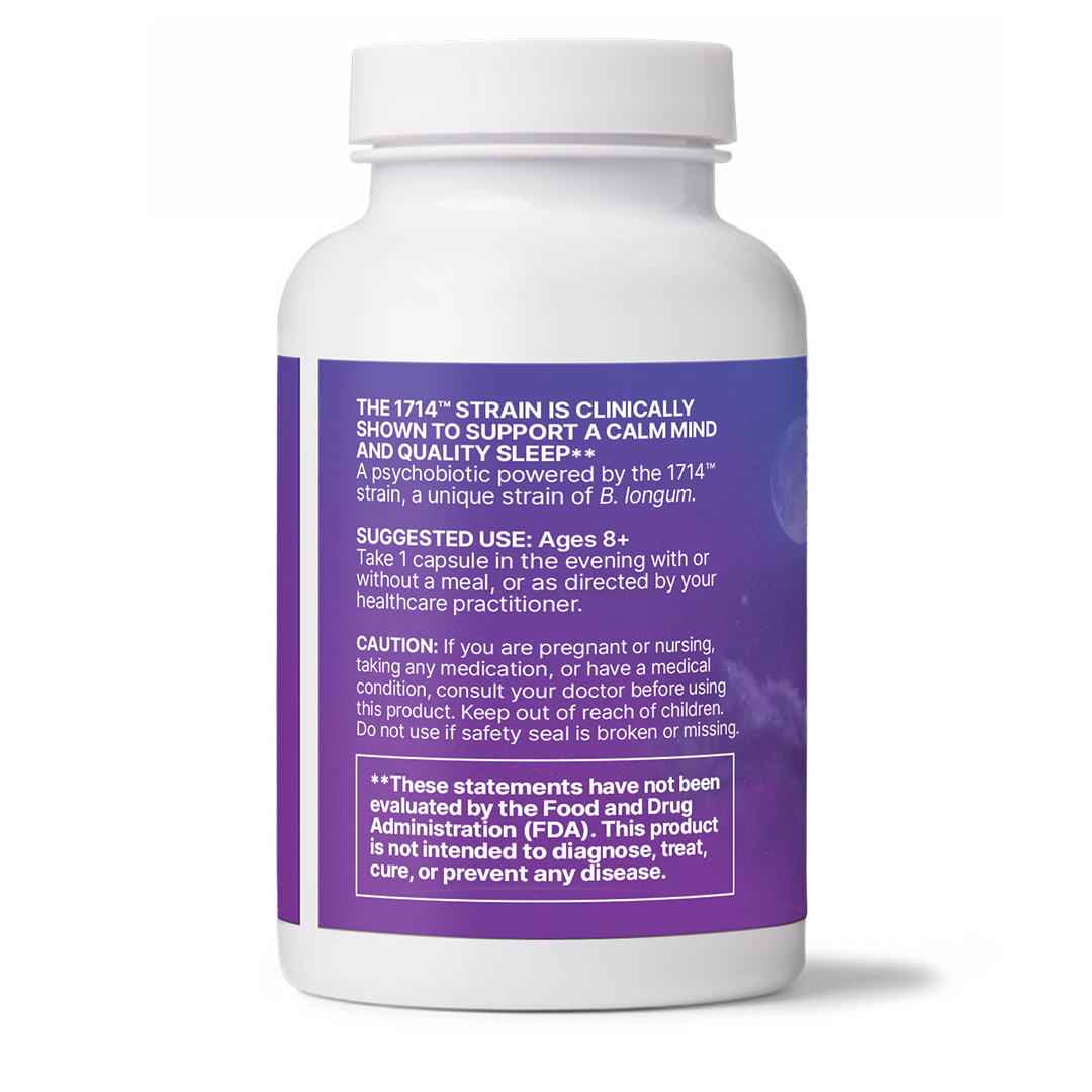 Powered by 1714™, has been specially developed to target the gut-brain axis and support clients with occasional stress, mild mood changes, low energy, feelings of occasional fatigue, and occasional sleeplessness.